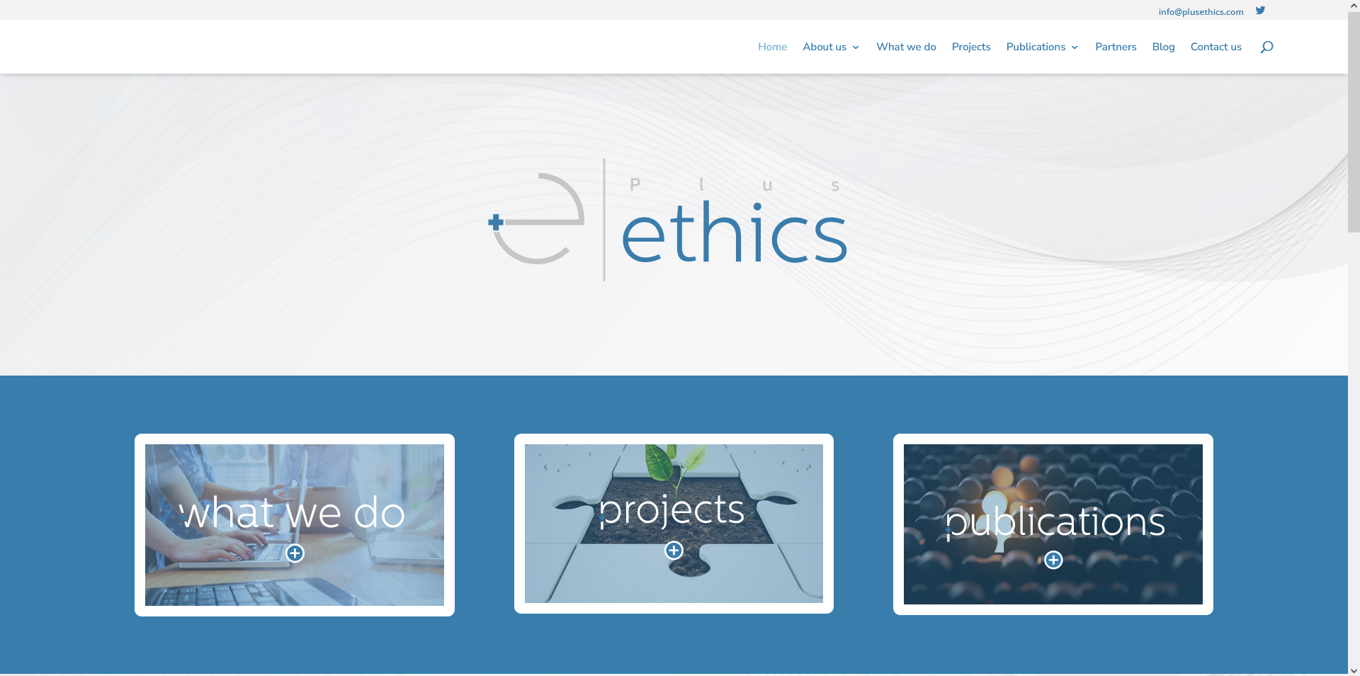 A hint of the next section in blue was included with the purpose of having a river effect in the reader. Once the first look at the content above the fold is done, the contrast provided by the change of colours drags the reader’s attention. The homepage then goes directly to the benefits of hiring the services of Plus Ethics, which can be seen with a slight scrolling down.